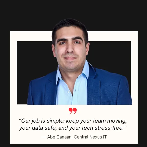 "My experience in just three months with Abe and Central Nexus has been nothing short of extraordinary. I've had several IT issues, and Abe addresses each of them within 5-10 minutes. I'm truly thankful to have Abe in my corner."